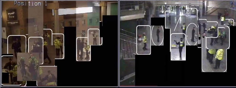 By 23:42 all of the reported injured survivors had been taken from the City Room to the Victoria Station concourse, leaving only the reportedly deceased in the City Room. Therefore, images of the exits from the City Room, captured between 22:31 and 23:42, should show some evidence that at least 38 people, supposedly struck by shrapnel from a TATP suicide bomb, were moved through the areas shown in the CCTV stills.