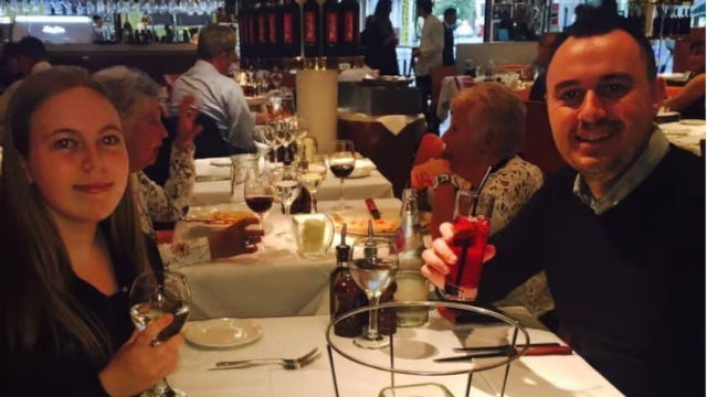 This was accompanied in the article with the last image of Eve and Martin Hibbert taken before the bang (see below). It shows Martin and his daughter Eve in a restaurant hours before the concert.