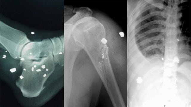 Here are some other images of internal shrapnel with neither "fuzzy outlines" nor black space air pockets. Presumably, Neil Sanders would not consider them real.