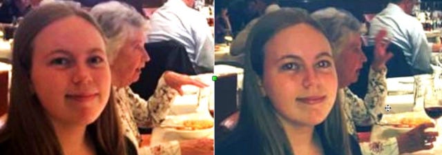 We can’t be sure which photograph was taken when. If we look at the photographs below, they capture separate moments, have different lighting and Eve’s face and expression have notable differences. It seems the one on the right is the photograph Martin Hibbert says was taken at 6.46pm. Evidently, the one on the left wasn’t taken at precisely the same time.