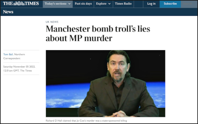 Richard D. Hall is currently facing a claim for harassment and GDPR breeches in the High Court brought against him by Martin and Eve Hibbert. As we've already discussed he has been attacked by almost the entire UK legacy media. Hall has been lambasted, not just for his Manchester Arena theory, but for his previous work as well, including his reporting on the Jo Cox murder and the disappearance of Madeleine McCann.